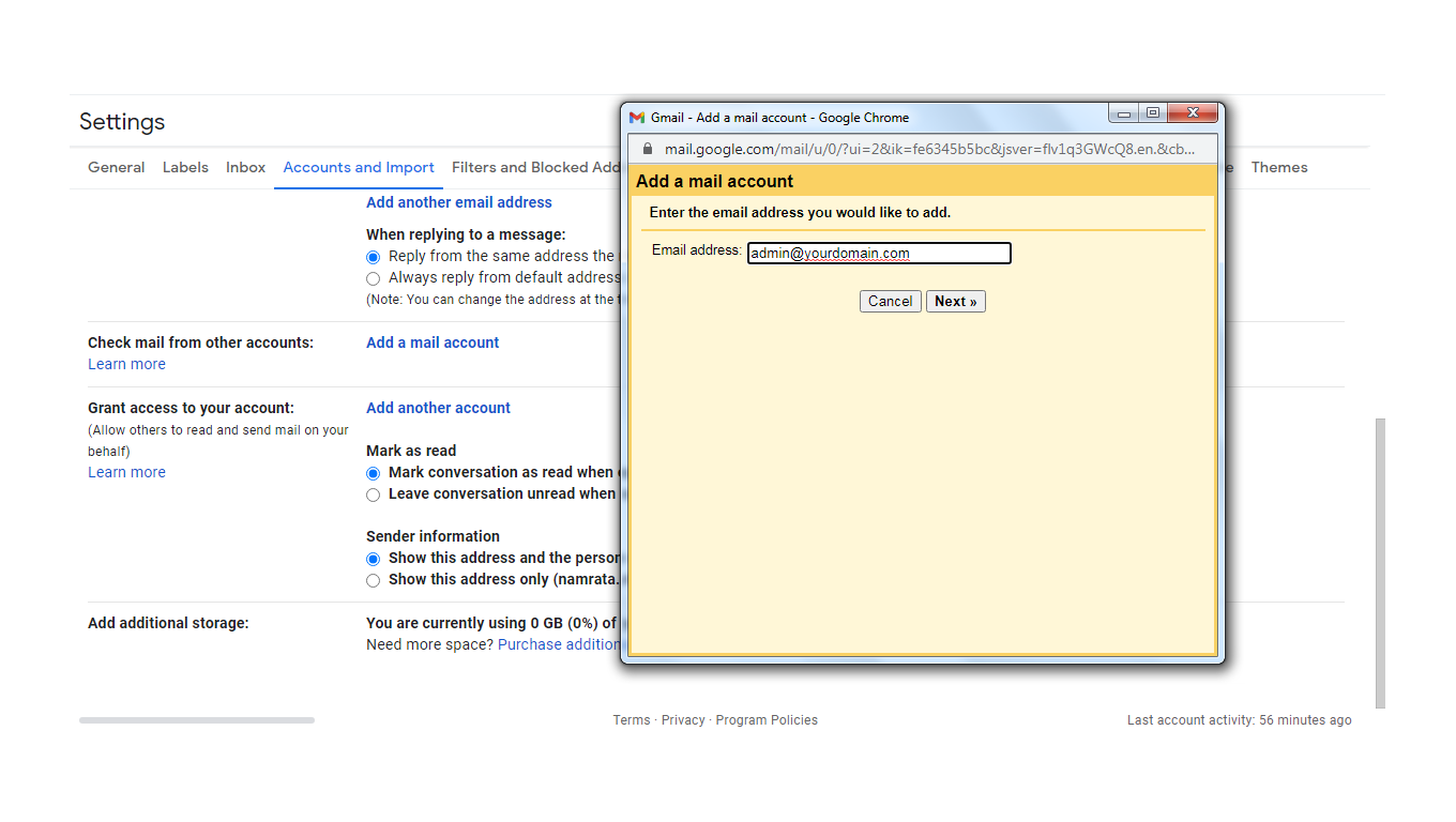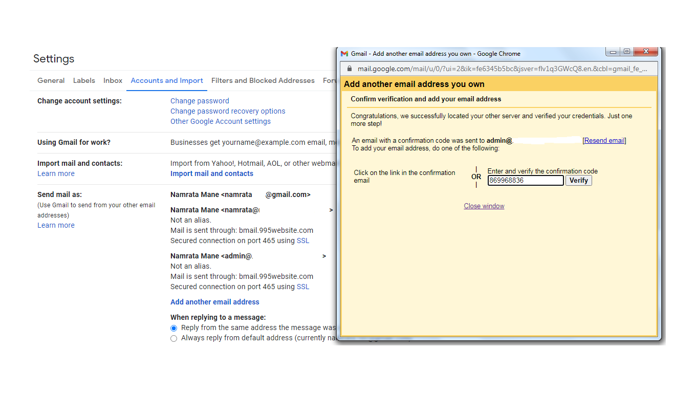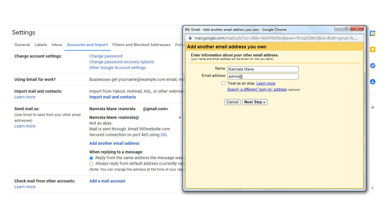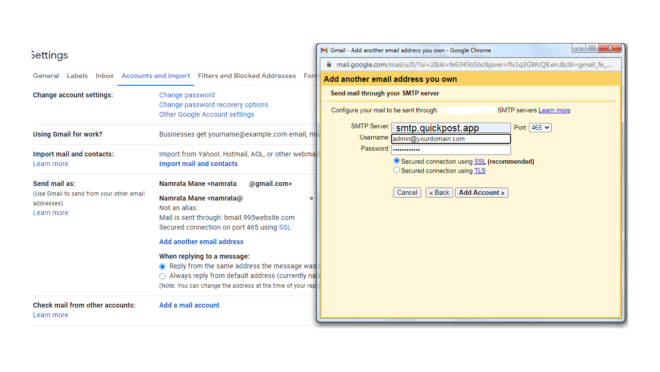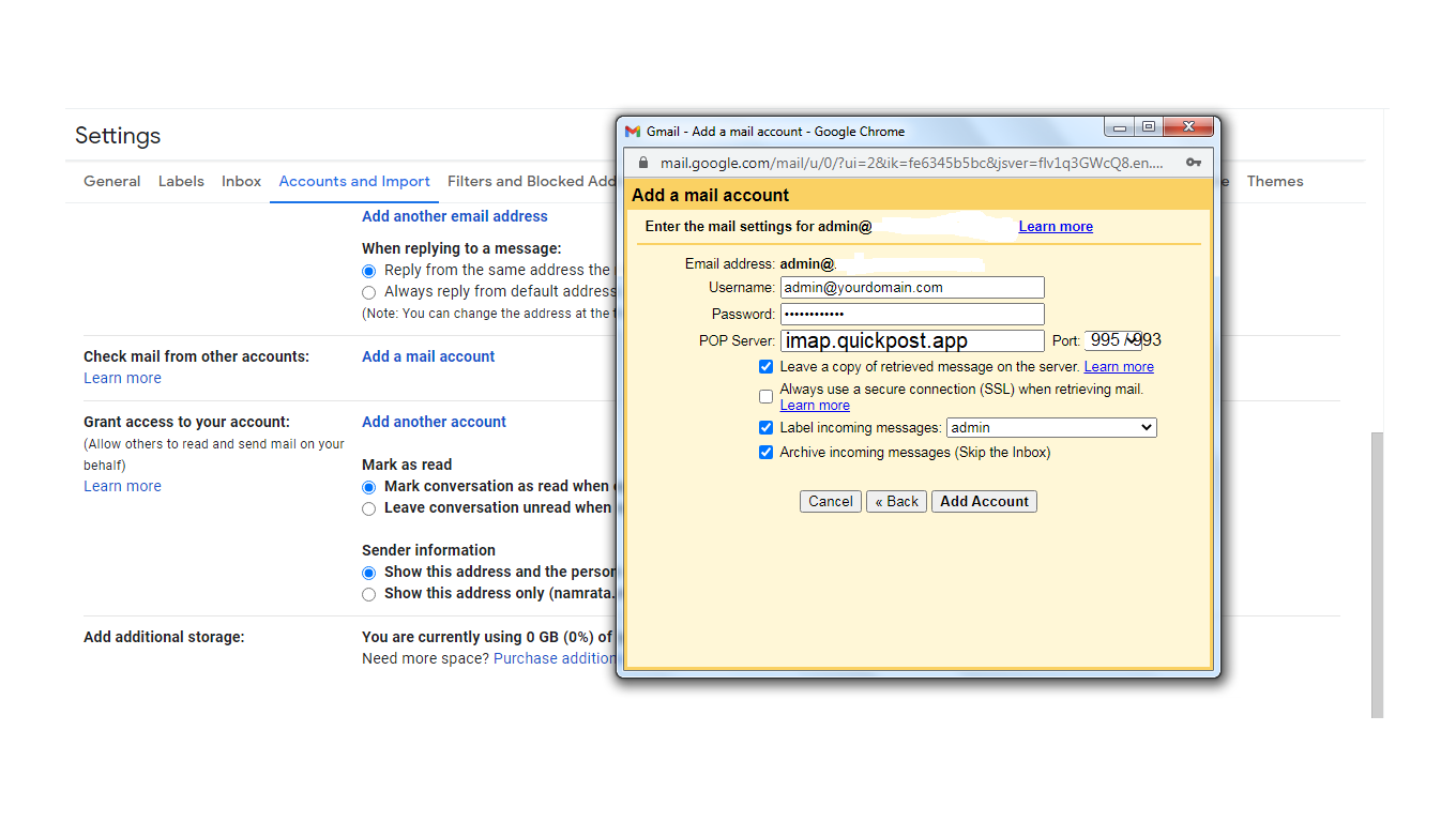 Configure your Gmail account with correct server settings